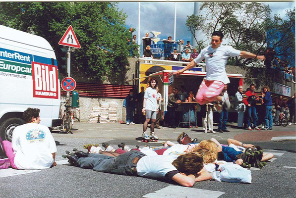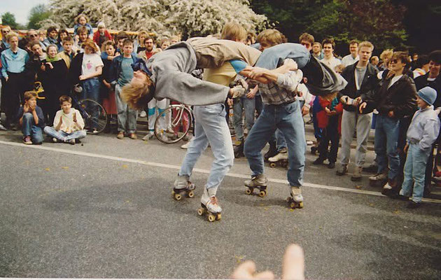 Die 80er Jahre waren die Hochphase des Rollschuh-Sports und -Tanzes. Dies spiegelt sich auch in den zahlreichen Rollschuhbahnen der damaligen Zeit wieder. Gleich 4 Indoor-Bahnen gab es in unserer Stadt verteilt. Auch die Straßen wurden damals unsicher gemacht. Ein beliebter Treffpunkt war u.a. der Jungfernstieg.