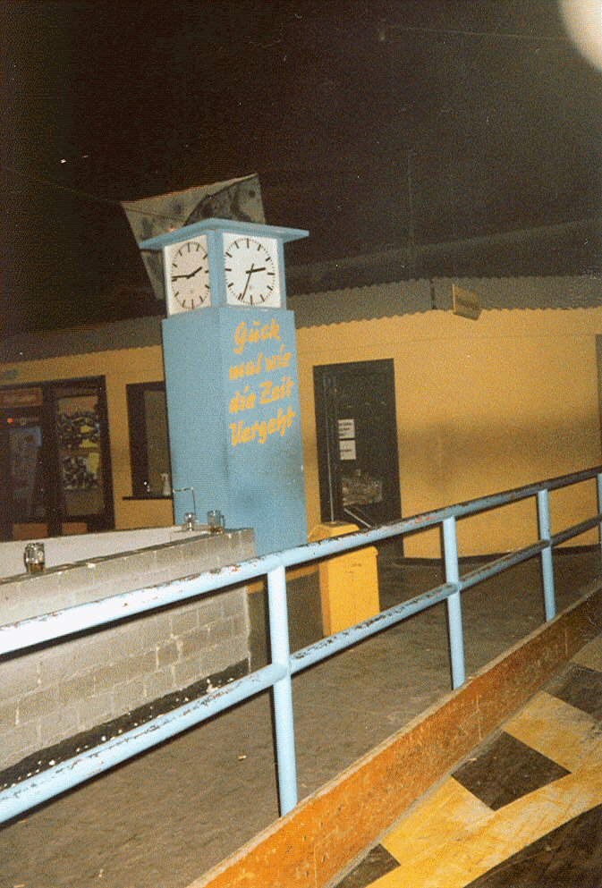 Ein markantes visuelles Erkennungsmerkmal war die Bande: zunächst in Rot, später in einem hellen Blau gestrichen – ein Wandel, der auch den Zeitgeist und die Entwicklung des Ortes widerspiegelte.